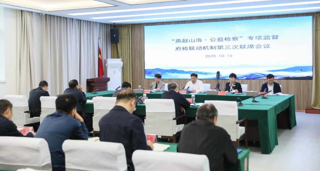 为进一步总结和深化府检联动工作,纵深推进“燕赵山海·公益检察”专项监督,10月15日,沧州市人民政府、沧州市人民检察院召开府检联动工作机制第三次联席会议。沧州市人民政府副市长戴树胜,沧州市人民检察院党组书记、检察长杜运彩出席会议并讲话。