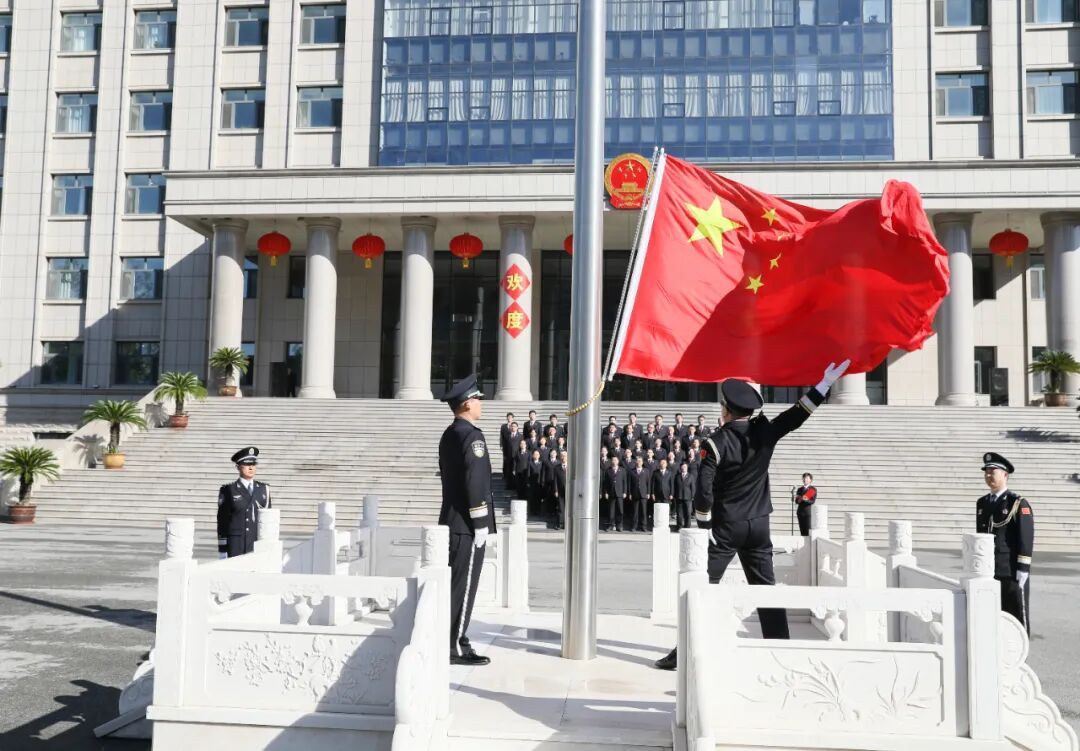 10月1日,沧州市人民检察院隆重举行升国旗仪式,热烈庆祝中华人民共和国成立75周年。市院党组书记、代检察长杜运彩主持仪式并致辞。