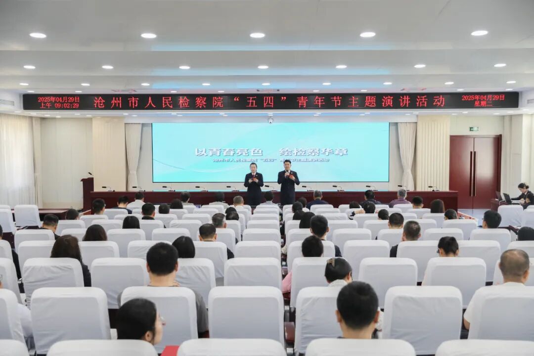 在“五四”青年节即将来临之际,为大力弘扬“五四”精神,展现沧州检察青年干警勇挑重担、勇当先锋、勇打头阵的精神风貌。4月29日,沧州市人民检察院举办“以青春亮色 绘检察华章”主题演讲活动。